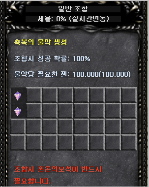 - Potion of Bless: 5 potions will be created using 1 Jewel of Bless; Potion of Soul: 5 potions will be created using 1 Jewel of Soul.